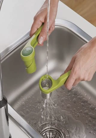 das 2-teilige Design besteht aus rostfreiem Edelstahl und Nylon