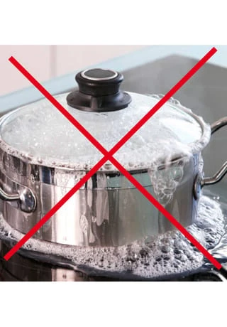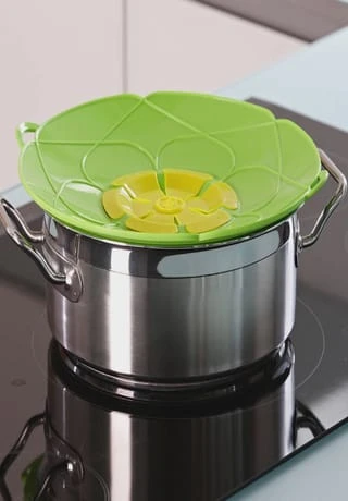 Flüssigkeit wird in der KOCHBLUME® aufgefangen und läuft wieder in den Topf zurück