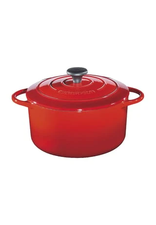 Gusseisen mit besonders hochwertiger und robuster Emaille, energieeffizient durch optimale Hitzeverteilung und Wärmespeicherfähigkeit, einfache Handhabung und extrem pflegeleicht, vielseitig einsetzbar: scharf anbraten, aromaschonend garen und schmoren, knusprig backen, stilvoll servieren, geeignet für alle Herdarten einschließlich Induktion sowie für Grillgeräte, hitzebeständiger Deckelknopf aus Edelstahl, rostfrei. In Koopertation mit Tassilo von Grolman Design entworfen.