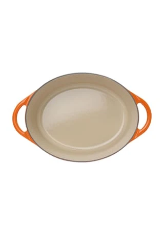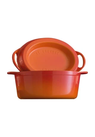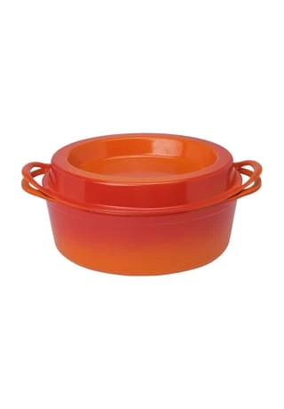 Dieser klassische Bräter von Le Creuset stammt aus dem Jahr 1934. Das französische Wort „feu doux“ bedeutet „sanftes Feuer“ – der Bräter erhielt diesen Namen, weil er zum Kochen bei niedriger Hitze geeignet ist. Dank der gusseisernen Konstruktion wird die Wärme gleichmäßig verteilt. Außerdem schließt er Feuchtigkeit ein – und sorgt so für saftige Gerichte, die bis zur Perfektion gekocht sind. Auf der Innenseite des Deckels befinden sich kleine Noppen, die kondensierte Flüssigkeit aus dem Topf ins Essen tröpfeln lassen. Um diesen Effekt zu verstärken, legen Sie beim Kochen auf dem Herd einfach Eiswürfel oben in die Deckelvertiefung.