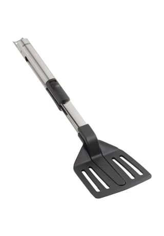 Zwei Funktionen in einem Gerät: Das spart Platz im Schrank und jede Menge Zeit. Der Leifheit Zangenwender 2in1 ist genau das, was man gerade zum Braten braucht. Zum Wenden des Steaks beispielsweise ist er ein stabiler Pfannenwender. Zum sicheren Servieren verwandelt er sich in Sekundenschnelle in eine Zange. Möglich macht es ein neuartiger Arretierungsmechanismus: Einfach mit dem Daumen die Arretierung lösen und schon wird der Pfannenwenders zur Zange.