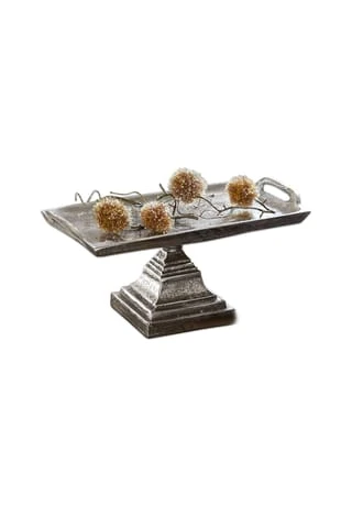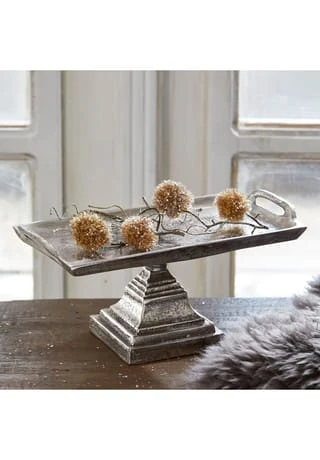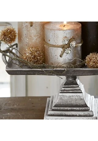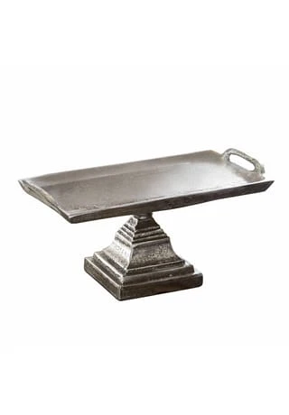 Ihre feine Oberflächenstruktur macht diese Servierplatte aus antikveredeltem Aluguss zur Hauptattraktion jeder Tafel. Ein abgestufter Standfuß, der besonders wenig Platz beansprucht, verleiht dem Schmuckstück eine ganz eigene Charakteristik. Ein Filzbesatz auf der Unterseite schont die Oberflächen ihrer Möbel. Ein sehr eleganter Auftritt für Deko und mehr. Diese schöne Etagere aus klassischem Aluminium besitzt eine ganz individuelle Struktur und einen wunderschönen silbernen Glanz. Mit Kerzen geschmückt, frischen Blumen in passenden Vasen oder bestückt mit etwas Obst – diese Etagere bringt ein stilvollen Ambiente auf den Esszimmertisch oder die Anrichte.