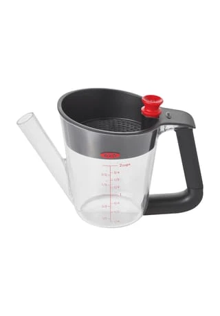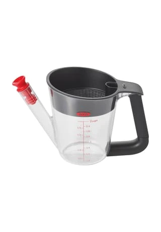 macht die Zubereitung von leckerer Bratensoße kinderleicht, da das Fett aufsteigt und beim Abgießen des Bratensafts in der Kanne zurückbleibt