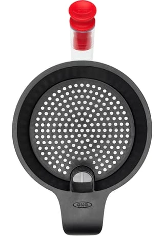 im Sieb ist außerdem ein integrierter Aufbewahrungsplatz für den Verschluss