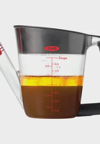 Messmarkierungen in ml und cups machen das Befolgen von deutschen und internationalen Rezepten besonders einfach