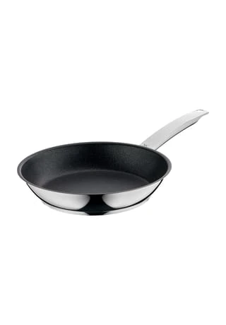Bestechend robust und alltagstauglich: Die Premium-Qualitätspfannen der WMF Kollektion PermaDur Advance aus formstabilem Cromargan®: Edelstahl rostfrei 18/10 halten eine Menge aus und sind vielseitig auf dem Herd sowie bis zu 260 °C im Backofen einsetzbar. Möglich macht dies unter anderem die langlebige Antihaftbeschichtung, die nicht nur fettarmes und schonendes Braten erlaubt, sondern darüber hinaus so kratzfest und unempfindlich ist, dass selbst Pfannenwender aus Metall ihr in der Regel nichts anhaben können. Der induktionsgeeignete TransTherm®-Allherdboden verteilt die Wärme sehr schnell und speichert sie angenehm lange, sodass delikater Fisch, kross gebratene Steaks oder feines Gemüse auch bei ausgeschaltetem Herd energieeffizient fertig garen, während ihre Aromen sich vollständig entfalten.
