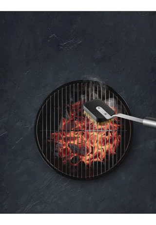 Speisereste haben keine Chance: Die strapazierfähigen Messingborsten der Grillbüste von WMF erreichen mühelos jede Stelle des Grillrosts und entfernen alle anhaftenden oder angebrannten Speisereste. Dabei eignet sich die Reinigungsbürste grundsätzlich für die üblichen Grillrost-Materialien von Gusseisen bis Edelstahl.