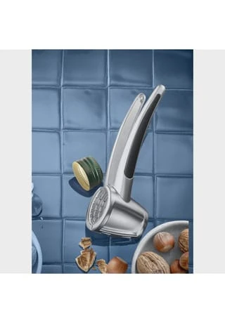 ob Wahlnüsse, Haselnüsse, Macadamia: Mit dem Gourmet Nussknacker von WMF sind sie alle fix geknackt. Die geriffelte Innenseite hält die Nüsse sicher fest und nicht nur diese. Auch für klassische Schraubverschlüsse von Getränkeflaschen bieten die Riffelung genügend Grip, so dass aus dem Nussknacker bei Bedarf auch ein cleverer Flaschenöffner wird. Dazu unterstützt ein integrierter Federmechanismus beim Knacken und Öffnen, reduziert den Kraftaufwand erheblich und sorgt so für ein besonders komfortables Handling. Darüber hinaus sind die Griffe rutschfest ausgeführt und liegen perfekt in der Hand.