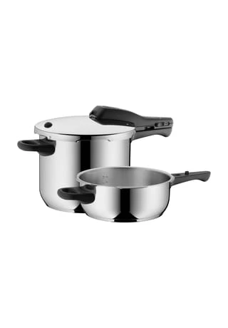 Gesund, lecker und schnell kochen: Mit zweiteiligen Set WMF Schnelltopf Perfect 6,5 l + 3,0 l gelingen vielseitige Gerichte voller Eigengeschmack im Handumdrehen. Die natürlichen Vitamine, Nähr- und Mineralstoffe bleiben dabei optimal erhalten. Dieser klassische Schnellkochtopf ist einfach zu bedienen und leicht zu öffnen. Seine zwei Kochstufen ermöglichen von zartem Gemüse, Fisch und Geflügel bis hin zu herzhaftem Fleisch, Kartoffeln und Eintöpfen jederzeit perfekte Ergebnisse.